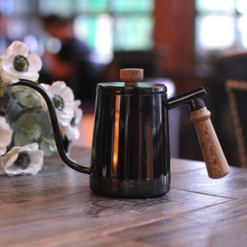 Its sleek profile and natural wood detailing make it a standout piece in any kitchen or coffee bar, blending modern performance with artisanal charm. Whether you’re brewing a morning V60 or showcasing your skills at a café, this Stirvana kettle brings elegance and control to every pour.